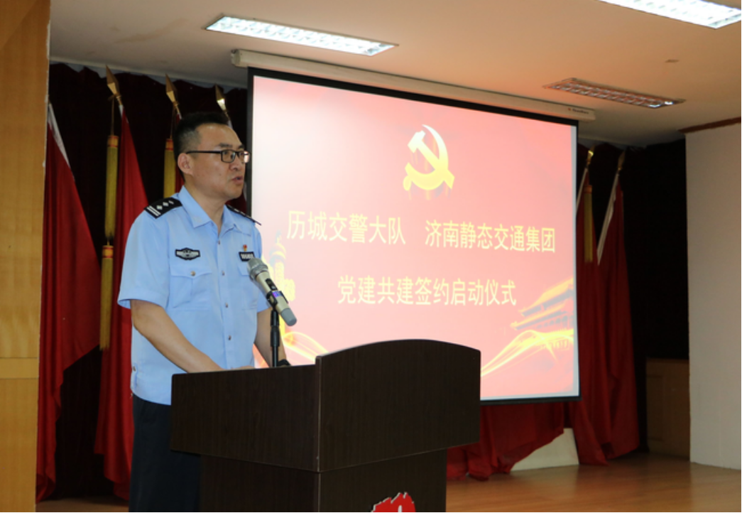 市交警支隊(duì)黨委副書記、政委段富勇,市國資委黨委委員、副主任謝紅兵,歷城交警大隊(duì)黨總支書記、大隊(duì)長孫如彬,濟(jì)南靜態(tài)交通集團(tuán)黨委書記、董事長李培鋼等參加共建簽約揭牌儀式并講話。儀式由歷城交警大隊(duì)黨總支副書記、政委崔科軍主持。